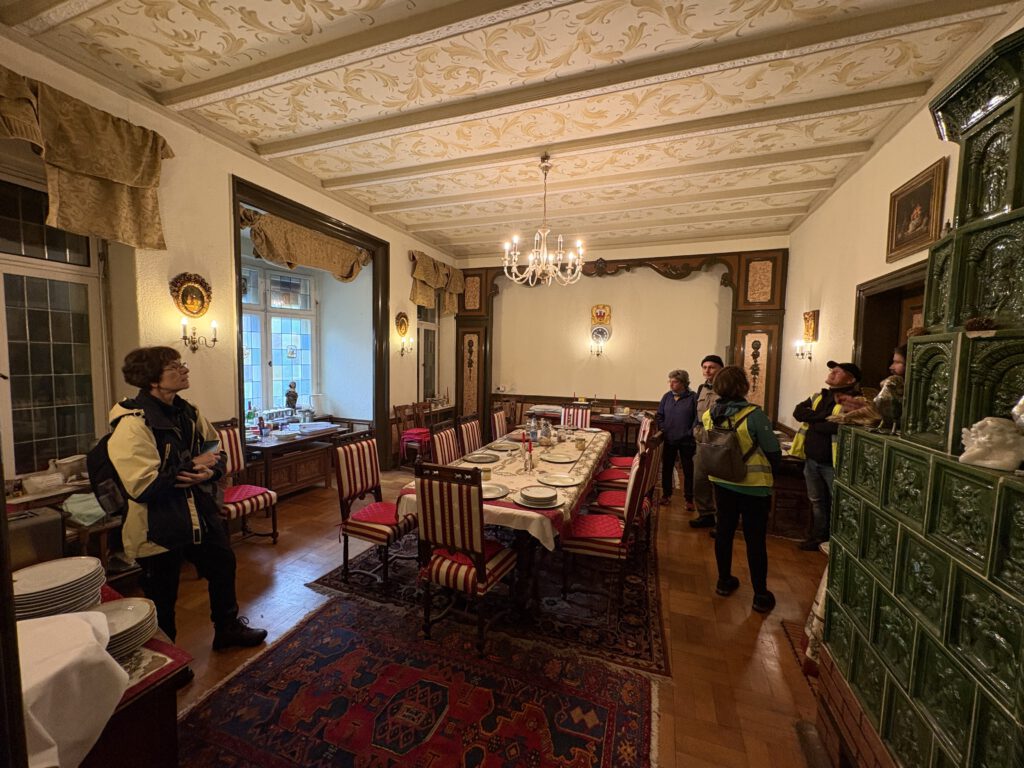 Der Besitzer, Herr von Pogrell, nahm uns in Empfang und führte mehrere Gruppen durch sein Haus und das Anwesen. Im Haus beeindruckten das gesamte Ambiente, die Ausgestaltung mit teils antiken Möbeln und die vielen Bilder, die seine verstorbene Frau gesammelt hatte.